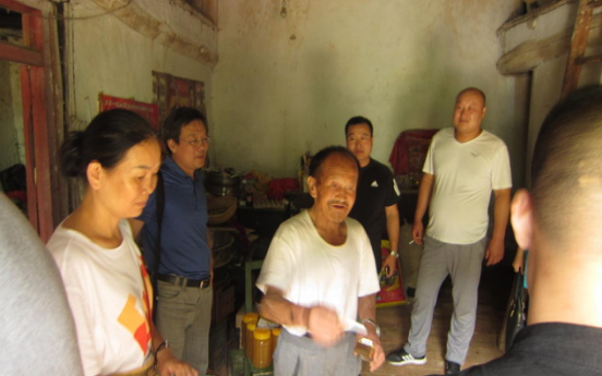 愛心團隊查看困難群眾劉本均滯銷的大量土蜂蜜